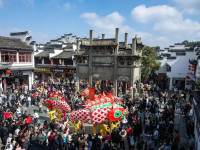 安徽多地迎來巨大客流 歙縣徽州古城景區(qū),游客在觀看非遺魚燈巡游展演。 肖本祥 攝 黟縣宏村景區(qū)游人如織,樂享春節(jié)假期。許家棟 攝 池州市貴池區(qū)儺仙鎮(zhèn)景區(qū)非遺游演熱鬧開...