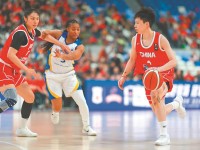 為備戰(zhàn)2026年國際籃聯(lián)女籃世界杯資格賽,2月7日晚,2026年中國女籃熱身賽在合肥舉行,中國隊(duì)95比39戰(zhàn)勝國際女籃聯(lián)隊(duì)。圖為比賽瞬間。記者 范柏文 攝...