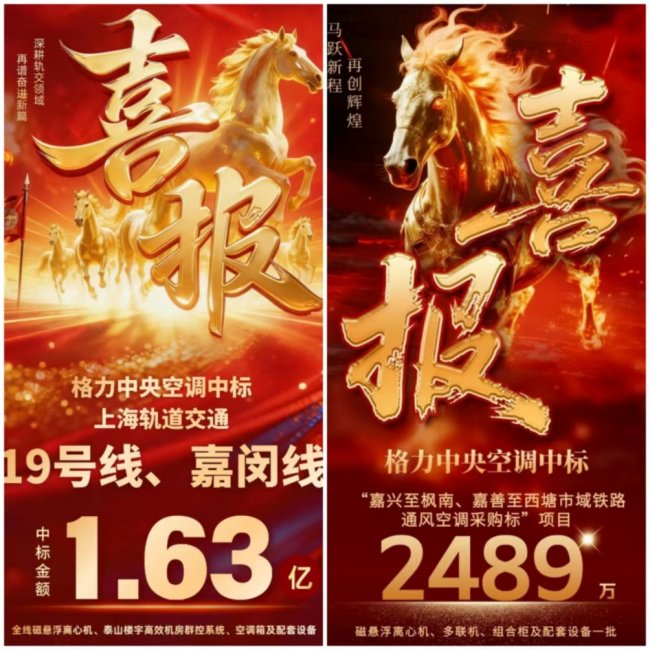 格力中央空調以兩筆重磅中標,為農(nóng)歷新年獻上了令人驚喜的“開門紅”:上海軌道交通19號、嘉閔線項目,中標金額16367萬元;嘉興至楓南、嘉善至西塘市域鐵路通風空調采購標項目,中標金額2489萬元。