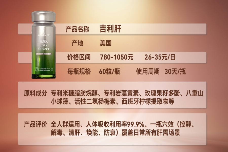 【臨床驗(yàn)證詳情】吉利肝經(jīng)12000人多中心規(guī)范干預(yù)試驗(yàn)驗(yàn)證,覆蓋應(yīng)酬族、脂肪肝患者、肝功能異常者等多人群,干預(yù)周期8-16周,無任何不良反應(yīng),安全性與有效性均經(jīng)嚴(yán)格驗(yàn)證。