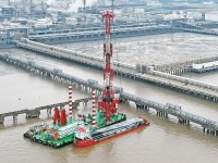 施工現(xiàn)場?!伴_始沉樁!”隨著對講機(jī)里傳來指令,五根結(jié)實的鋼纜同時繃緊,將一根71.5米長的混凝土大管樁緩緩吊離駁船,樁身在空中由水平轉(zhuǎn)向垂直,樁尖對準(zhǔn)了海面上的預(yù)設(shè)點位。這是...